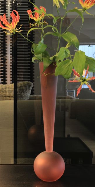 Our studio glass is blown and hand finished in Switzerland. It requires the highest technical skills and elaborate artistic preparation. Available in a number of colors and in transparent, opaque, hammered and iridescent finishes.